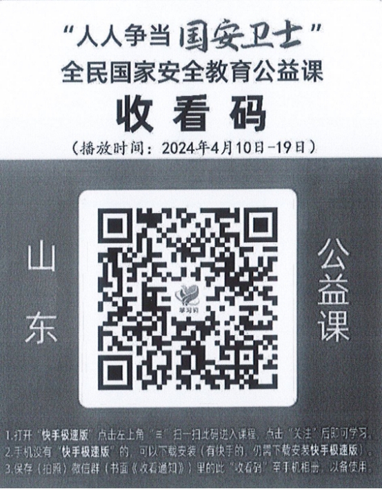 山东省“人人争当国安卫士”国家安全教育公益课课程安排及收看码
