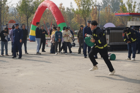 比赛区域共设立了灭火自救、双人运球及消防铁人三项三个项目,既富有趣味性,又紧贴消防实战技能。参赛选手们在比赛中团结协作、奋勇争先,不仅展现出卓越的身体素质与运动才能,更将在日常消防安全教育中所学的知识灵活运用于实践,体现出良好的消防安全素养和应急处置能力。现场观众被紧张而精彩的比赛深深吸引,不时响起热烈掌声和加油助威声,气氛十分热烈。